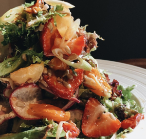Known for its simple yet expertly crafted cocktails and responsibly sourced cuisine, The Roxy delivers a unique atmosphere in an elegant Art Deco setting. The team’s commitment to exceptional service and meticulous attention to detail ensures every guest leaves with lasting memories. Their lunch menu consists of a variety of starters, sandwiches, salads, pasta, and sides. Dinner entrees include salmon, chicken, steak, etc.