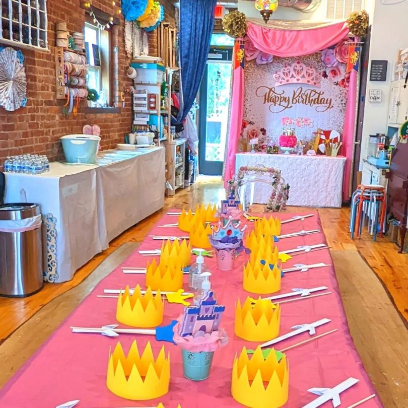 Step into a world of your greatest imagination for your next birthday party or private event. At Luna de Papel Art Studio, they offer an incredibly customized experience for your celebration or party. They work closely with families to gather a sense of the goals and desired theme for the event. Together they will help create a craft, decorations, a backdrop for your food and cake display, etc., all bringing the theme to life. Whatever your heart desires, they can help you make your dreams come to fruition! In addition to helping transform the space for your theme, they also provide plates, napkins, cups, utensils, and water. They can also help you create individualized invitations, thank-you cards, gift bags, and personalized water bottles.