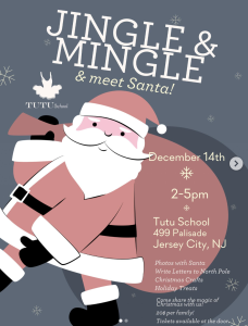‘Tis the season to Jingle & Mingle! Catch Santa at Tutu School on Dec 14 from 2–5pm. Tickets on sale now (or at the door)! Come for the Santa pics, stay for the holiday cheer!
